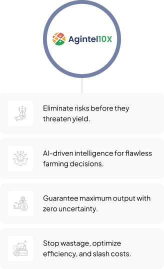 FarmERP AgIntel10X is the AI-powered agricultural intelligence platform that delivers real-time, data-driven insights with unmatched accuracy. Built for agribusinesses, farmers, and growers, it applies AI, machine learning, satellite imagery, and predictive analytics to provide exact forecasts on crop health, yield, weather risks, and resource optimization.